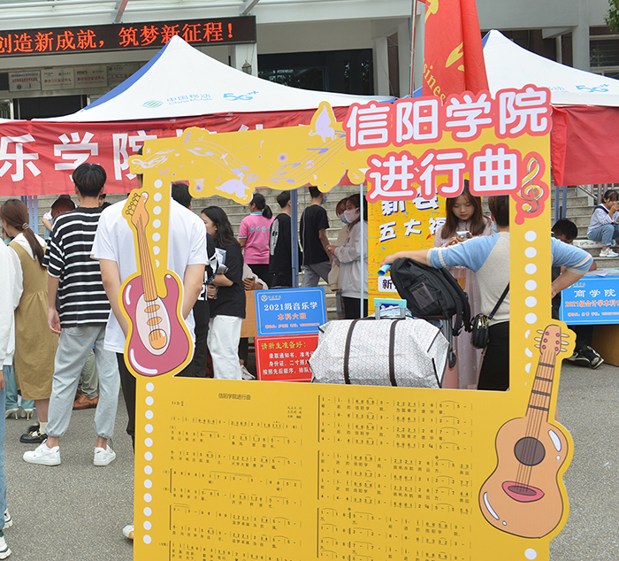 今年,各单位在迎新工作中都一展所长,表达了对新生的诚挚欢迎与悉心关怀。新生和家长纷纷在宣传部制作的“梦启信院,成才报国”合影墙拍照留念,名师风采展架也吸引新生及家长频频驻足观看,大家对学校的办学实力和师资队伍啧啧称赞。音乐学院制作了《信阳学院进行曲》合影墙,理工学院更是为新生准备了“入学八大件”,充满了对新同学的关怀之情。各迎新点都准备了饮用水和消毒液,并安排师生提供志愿服务,赢得了新生和家长的普遍好评。