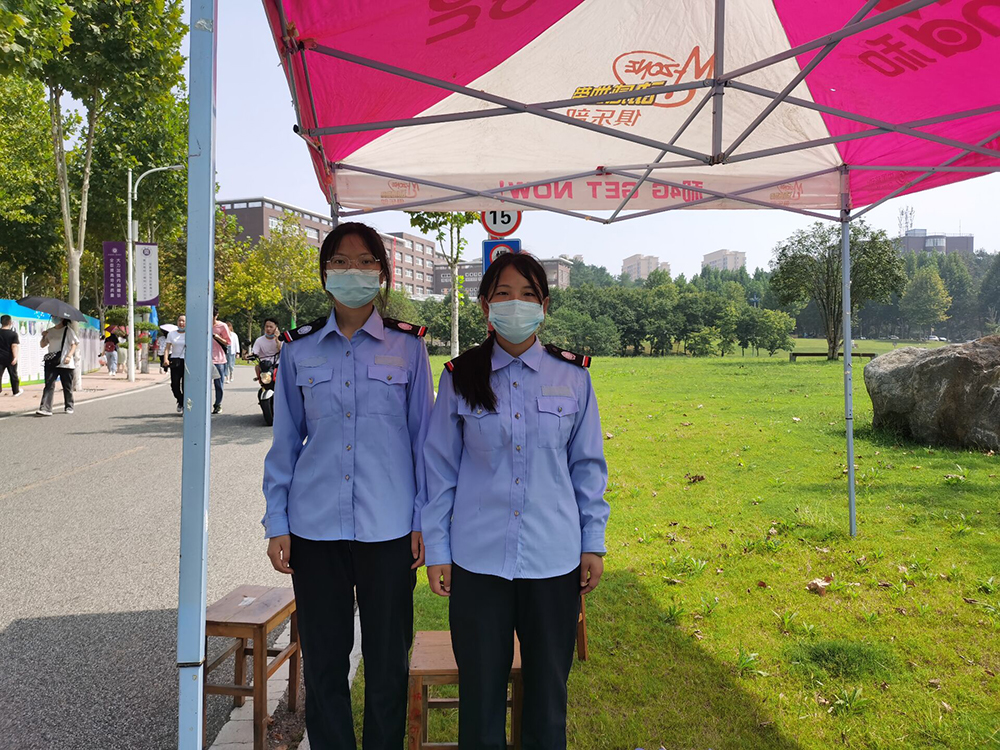 笑语盈盈迎新生,轻声细语递温情。迎新工作的顺利开展离不开校园护卫队的周密安排和辛勤付出。他们提前放置校园路线图和交通指示牌,帮助新生尽快熟悉校园。同时,安排人员在校内各个路口疏导交通,确保道路畅通,维持校园秩序。即使汗水浸湿了衣服,他们仍坚持在自己的岗位上。在采访中,校园护卫队干事闵海莹说:“这些都是我们应该做的事情,希望能帮助新生尽快熟悉校园,开启自己的大学生活。”